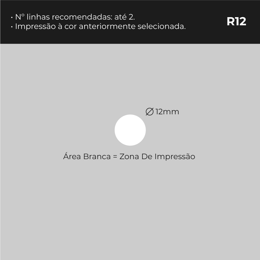 Carimbo Printer R12 Redondo com tamanho de 12 mm com impressão até 2 linhas.