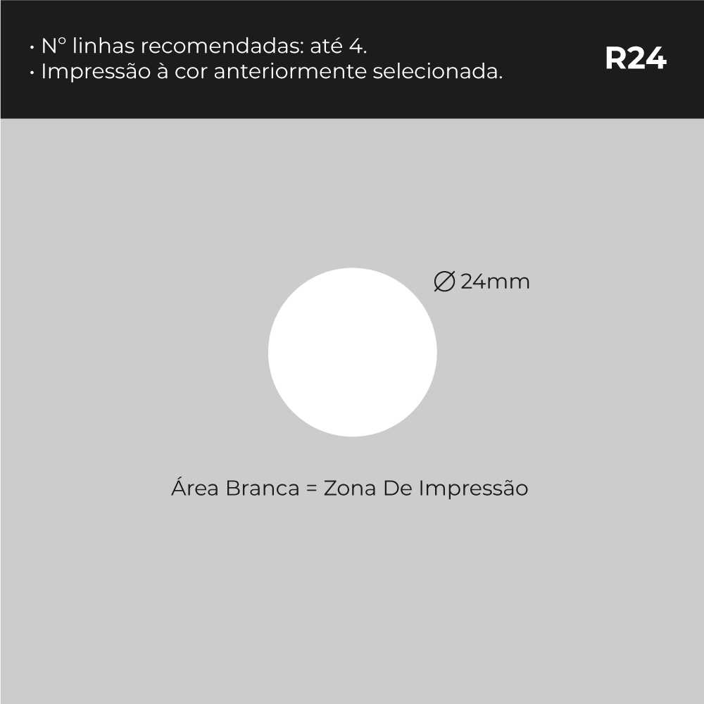 Carimbo Printer R24 Redondo com tamanho de 24 mm com impressão até 4 linhas.